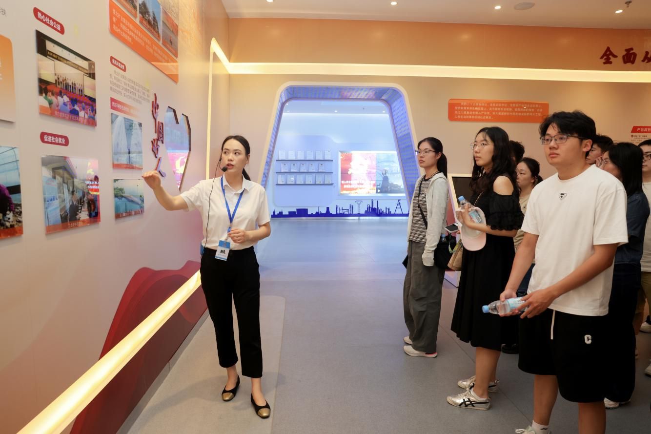研學路線精心設計,集中展現集團高質量發展面貌。學子們走進碳鑫科技公司,實地觀摩了現代化生產的規范與高效;在綠色化工新材料研究院,近距離體驗了科技創新驅動發展的澎湃活力;參觀淮北礦業展廳,共同回顧了集團67載砥礪奮進的光輝歷程。多維度的實踐體驗,使青年學子深刻感知到集團由傳統到現代、由“黑色”到“多彩”的華麗轉變。